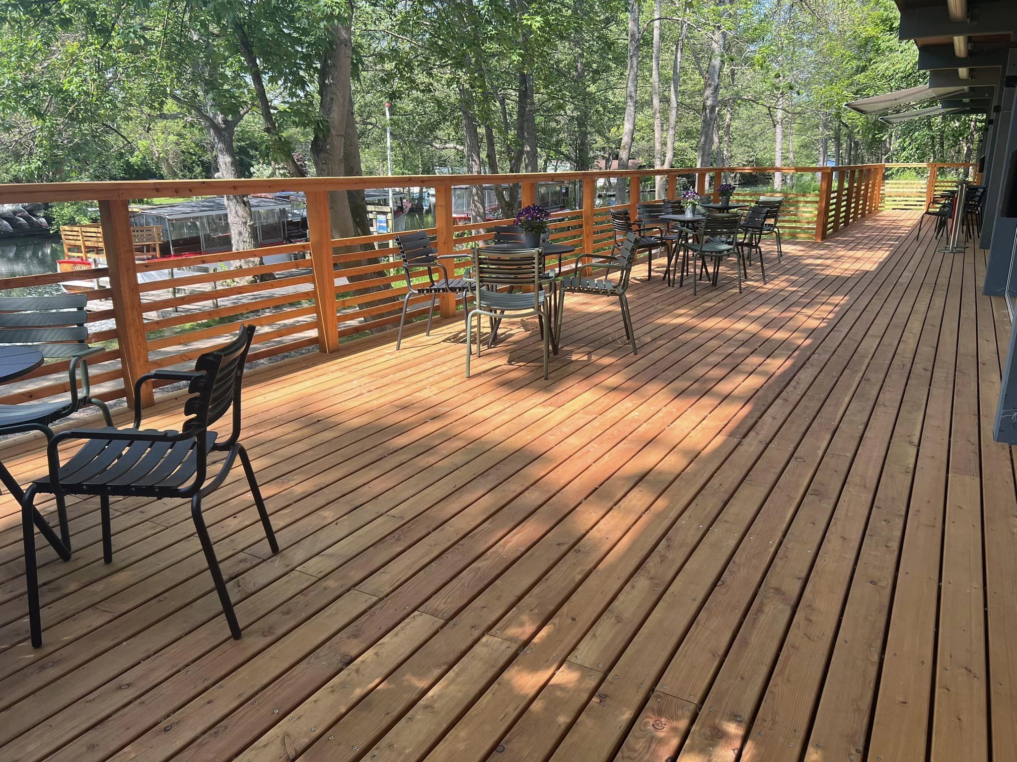 Vi er stolte over at have udført en iøjenfaldende træterrasse hos Sinatur Hotel og Konference (Frederiksdal) i Bagsværd, Lyngby. Terrassen, der er lavet i dansk lærketræ, strækker sig over hele 140 kvm og er et prægtigt eksempel på bæredygtig byggepraksis.